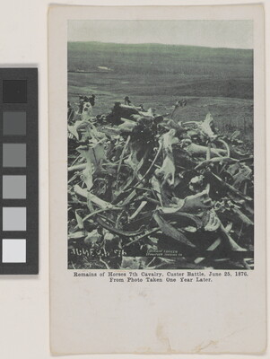 l.l. to l.r. printed: Remains of Horses 7th Cavalry, Custer Battle, June 25, 1876. \ From Photo Taken One Year Later.