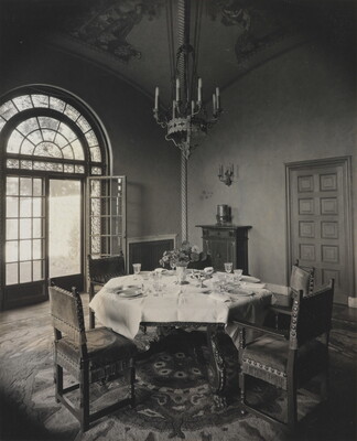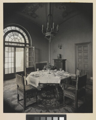 u.c. on paper label: [printed]: A : PHOTOGRAPH \ BY : LAURA : GILPIN \ TITLE [typed]: RESIDENCE OD [sic] MR.&MRS. L.M. \ HUGHES. \ BREAKFAST ROOM. [printed]: COLORADO : SPRINGS : COLORADO