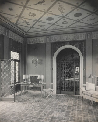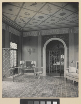 u.c. on paper label: [printed]: A : PHOTOGRAPH \ BY : LAURA : GILPIN \ TITLE [typed]: RESIDENCE OF MR.&.MRS. L.M. \ HUGHES. \ POMPEIAN [sic] ROOM. [printed]: COLORADO : SPRINGS : COLORADO