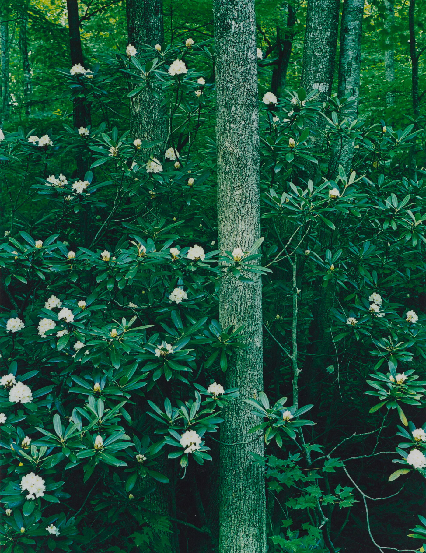 Rhododendron maximum by Brook, Roaring Fork Road, Great Smoky Mountains National Park, Tennessee, July 1, 1968