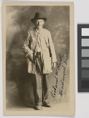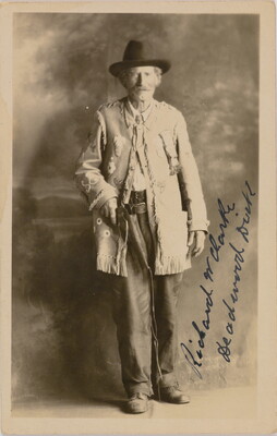 c. in ink: autographed photo of \ Richard W. Clark [sic] \ "Deadwood Dick" of western fame \ stagecoach guard in the Black Hills \ who went by airplane to Washington \ to visit President Coolidge in 1928