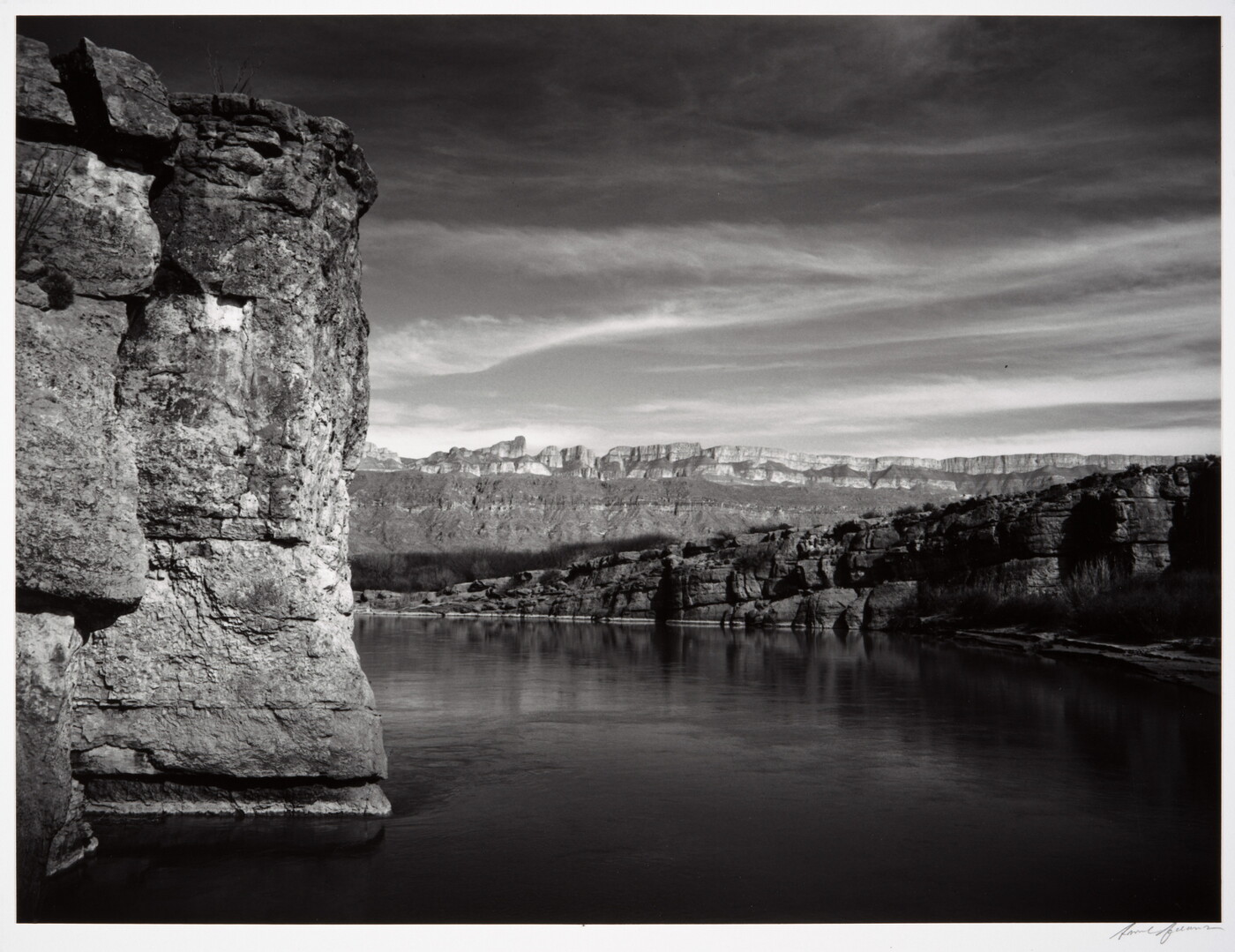c. [stamp]: Photograph by Ansel Adams \ [in ink] Rio Grande (and mountains in Mexico) \ [in ink] Big Bend National Park, Texas
