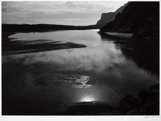 c. [stamp]: Photograph by Ansel Adams \ [in ink] The Rio Grande, Late Afternoon \ [in ink] Big Bend National Park, Texas \ Route 1 Box 181 Carmel, California 93921