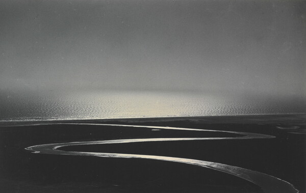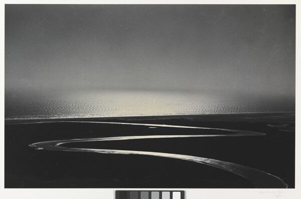 u.c. on paper label: [printed]: A PHOTOGRAPH BY \ LAURA GILPIN \ SANTA FE, NEW MEXICO \ [typed]: THE RIO GRANDE YIELDS ITS SURPLUS \ TO THE SEA. \ from \ THE RIO GRANDE, RIVER OF DESTINY \ DUELL, SLOAN & PEARCE, PUB. N. Y. 1949 [sic]