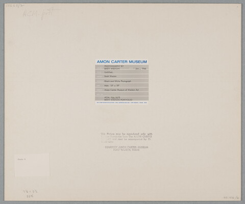 c. [stamp]: This Picture may be reproduced only with \ Written Permission from the AMON CARTER \ MUSEUM and must be accompanied by The \ Credit Line: \ COURTESY AMON CARTER MUSEUM \ FORT WORTH, TEXAS