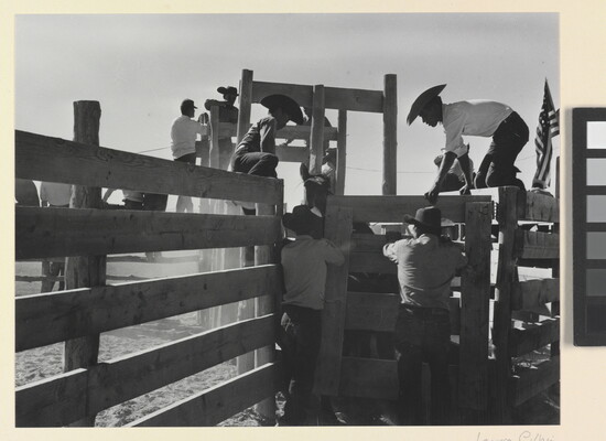 u.c. on paper label: [printed]: A PHOTOGRAPH BY \ LAURA GILPIN \SANTA FE, NEW MEXICO \ [typed]: RODEO EVENTS AT SHIP ROCK \ From THE ENDURING NAVAHO \ University of Texas Press, Pub. 1968