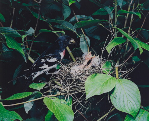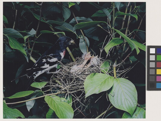 u.l. [stamp]: PHOTOGRAPH \ By \ ELIOT PORTER \ No. [in ink]: 15-6-21-23 \ [stamp]: Title [in ink]: Rose-breasted \ Grosbeak [male symbol]