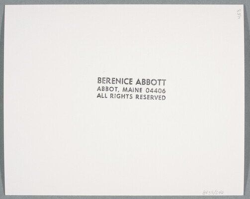 c. stamp: BERENICE ABBOTT \ ABBOT, MAINE 04406 \ ALL RIGHTS RESERVED