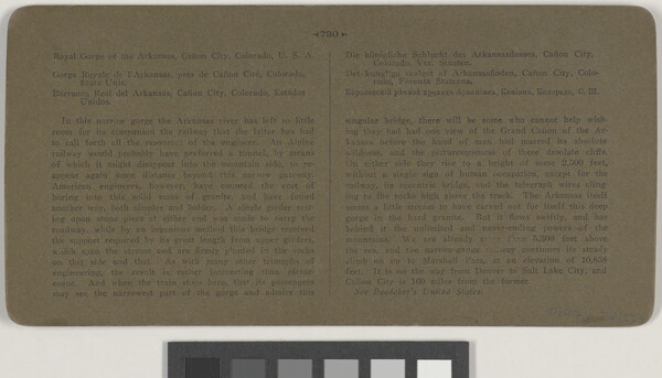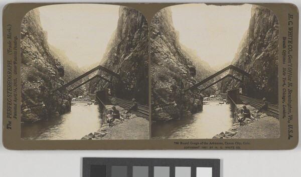 l.c. to l.r. printed: 730 Royal Gorge of the Arkansas, Canon City, Colo. \ COPYRIGHT 1901 BY H.C. WHITE CO.