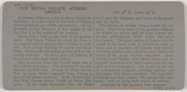 l.r. printed: 7172 - The Royal Palace, Athens, Greece.