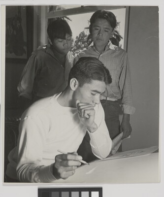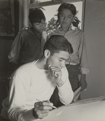 ["Rudy" Van Tsinajinnie teaching at Phoenix Indian School]