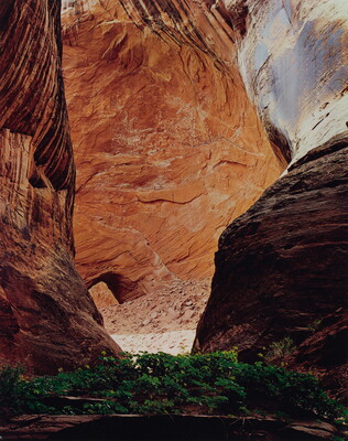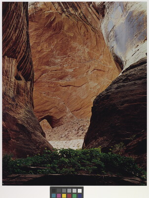 u.l. [stamp]: PHOTOGRAPH \ By \ ELIOT PORTER \ No. [in ink]: 65-147 \ [stamp]: Title [in ink]: RUESS ARCH AND AMPHITHEATER \ DAVIS GULCH, ESCALANTE BASIN \ UTAH