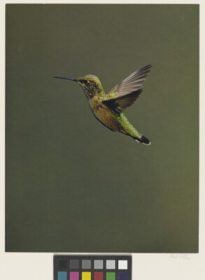 u.l. [stamp]: PHOTOGRAPH \ By \ ELIOT PORTER \ No. [in ink]: 14-3-4-24 \ [stamp]: Title [in ink]: Rufous Hummingbird, [male symbol]