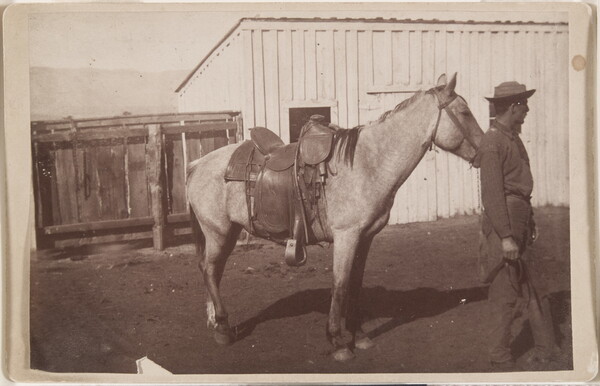 [Saddled horse and man]