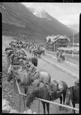 [Saddles horses at Glacier Park Lodge]