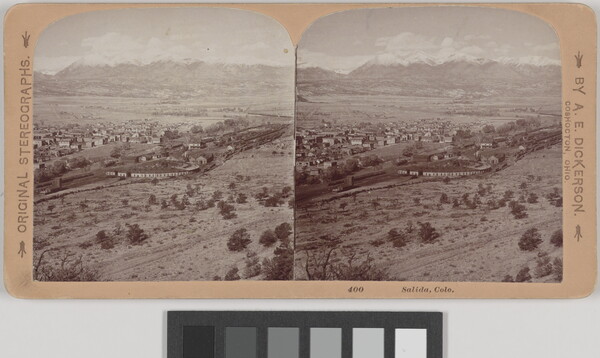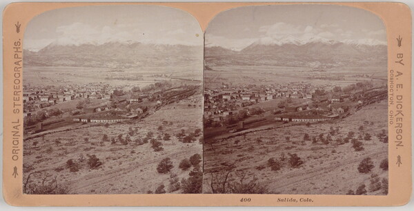 u.r. to l.r in black ink: Salida Colo looking north past Mt. Shavano \ [in blue ink]: Wendell Hutchinson \ Salida [ underlined]