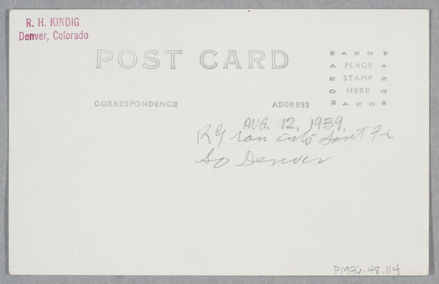 u.l. printed in purple: R. H. KINDIG \ Denver, Colorado