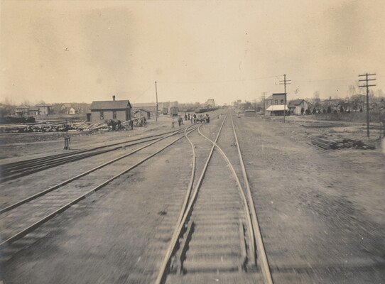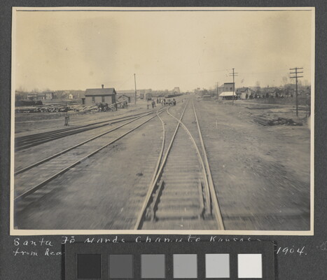 l.l. to l.r. in ink: Santa Fé yards Chanute Kansas - \ from Rear of Pillbury Passenger Train april 16th 1904.