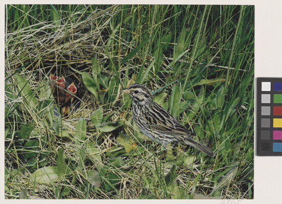 u.l. [stamp]: PHOTOGRAPH \ By \ ELIOT PORTER \ No. [in ink]: 15-6-10-18 \ [stamp]: Title [in ink]: Savanna Sparrow