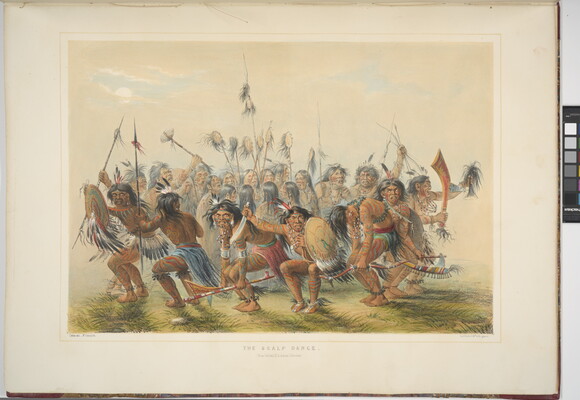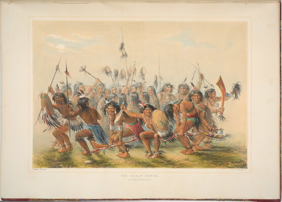 l.c. engraved on stone, below image: THE SCALP DANCE. \ (From Catlin's N.A. Indian Collection)