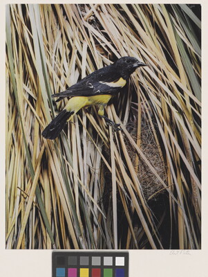 u.l. [stamp]: PHOTOGRAPH \ By \ ELIOT PORTER \ No. [in ink]: 15-5-10-4 \ [stamp]: Title [in ink]: Scott's Oriole, [male symbol]