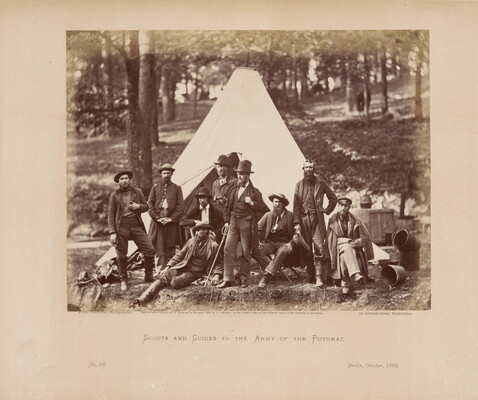 printed: ALEX. GARDNER, Photographer, \ Entered according to act of Congress, in the year 1866, by A. Gardner, in the Clerk's Office of the District Court of the District of Columbia. \ 511 7th St., Washington. \ SCOUTS AND GUIDES TO THE ARMY OF THE POTOMAC. \ No. 28. \ Berlin, October, 1862.