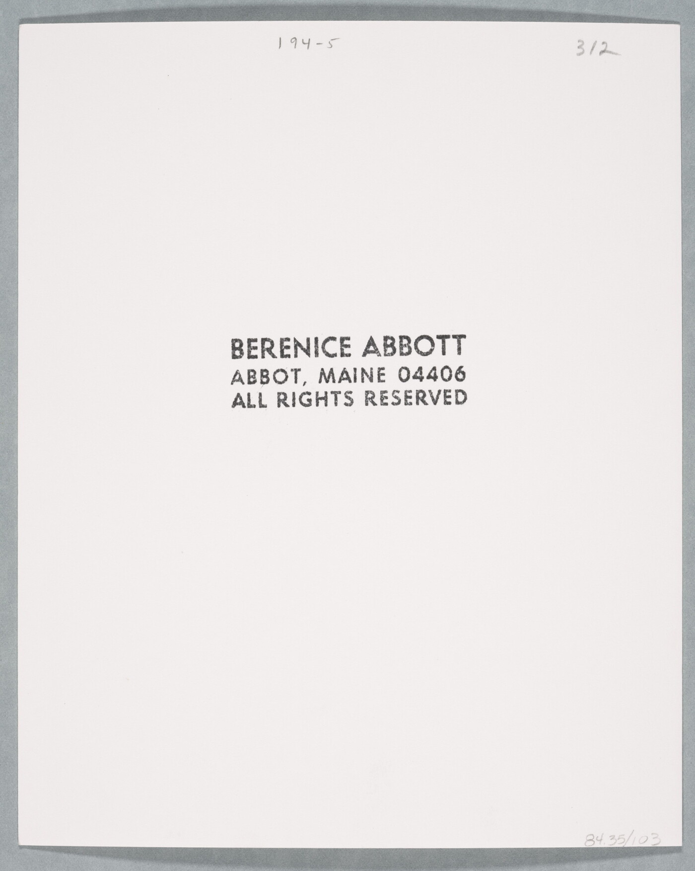 c. [stamp]: BERENICE ABBOTT \ ABBOT MAINE 04406 \ ALL RIGHTS RESERVED