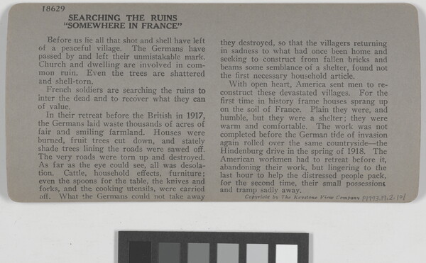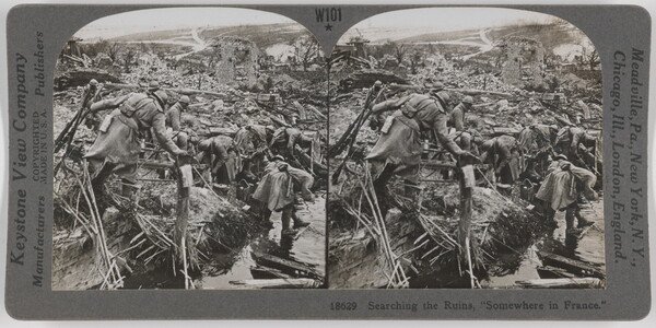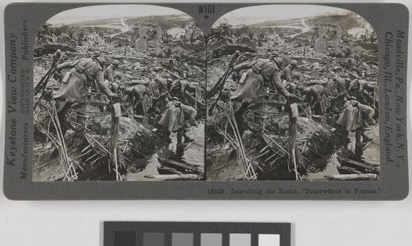 l.r. printed: 18629 Searching the Ruins, "Somewhere in France."