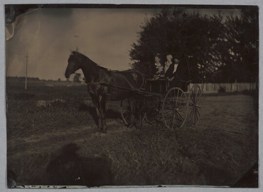 [Family in horse-drawn carriage], 1870s-1880s