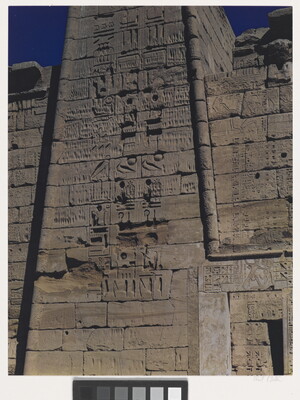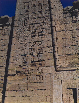 u.l. [stamp]: PHOTOGRAPH \ By \ ELIOT PORTER \ No. [in ink]: 73-33 \ [stamp]: Title [in ink]: Second Pylon \ Medinet Habu \ Thebes