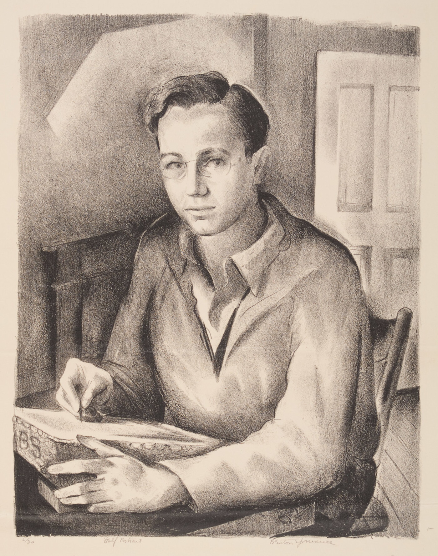 l.l. beneath image, in graphite: 5/30 Self Portrait
