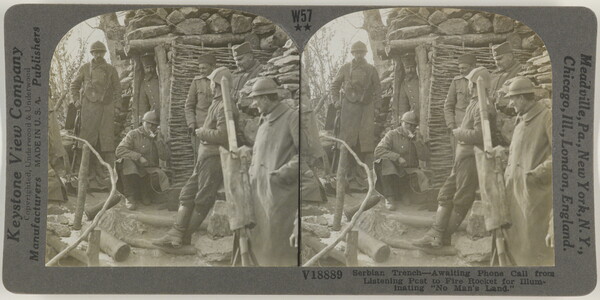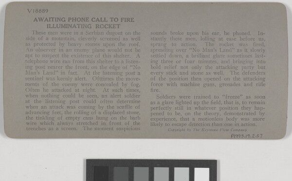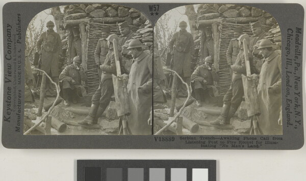 l.r. printed: V18889 Serbian Trench - Awaiting Phone Calle from \ Listening Post to Fire Rocket for Illum - \ nating "No Man's Land."