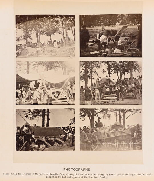 PhotographsTaken during the progress of the work in Riverside Park, showing the excavation for, laying the foundations of, building of the front and completing the last resting place of the Illustrious Dead., 1885