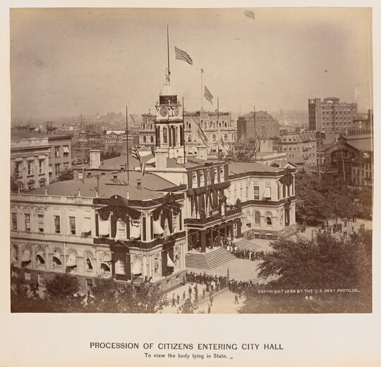 Procession of Citizens Entering City Hall to View the Body Lying in State, 1885
