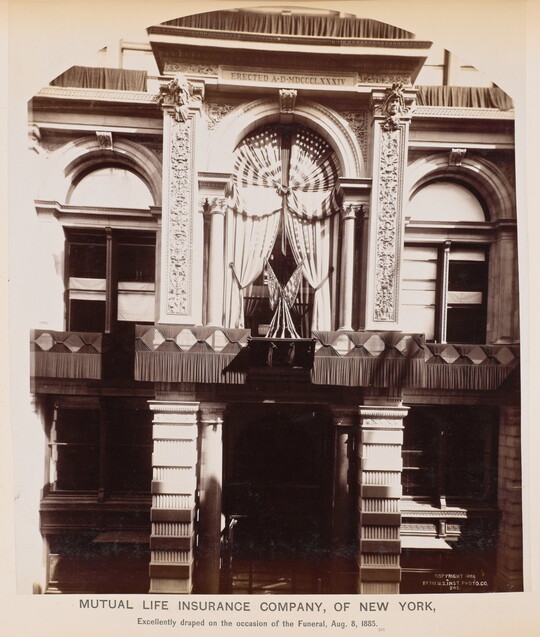 Mutual Life Insurance Company, of New York, Excellently Draped on the Occasion of the Funeral, Aug. 8, 1885., 1885