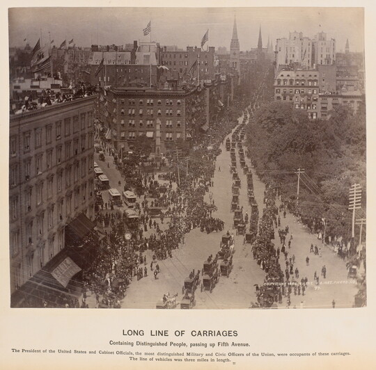 Long Line of Carriages Containing Distinguished People, Passing Up Fifth Avenue, 1885