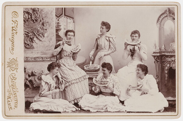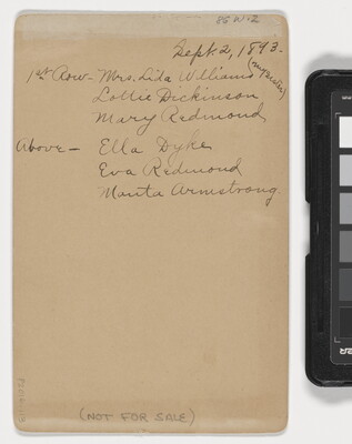u.c. in pen: Sept. 2, 1893 - / 1st Row - Mrs. Lida Williams (my sister) / Lottie Dickinson / Mary Redmond / Above - Ella Dyke / Eva Redmond / Marta Armstrong