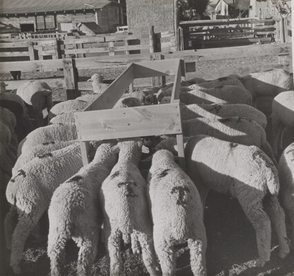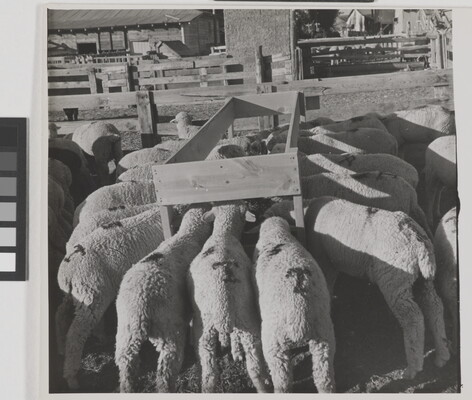 [Sheep eating from trough, Shiprock, New Mexico]