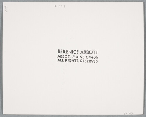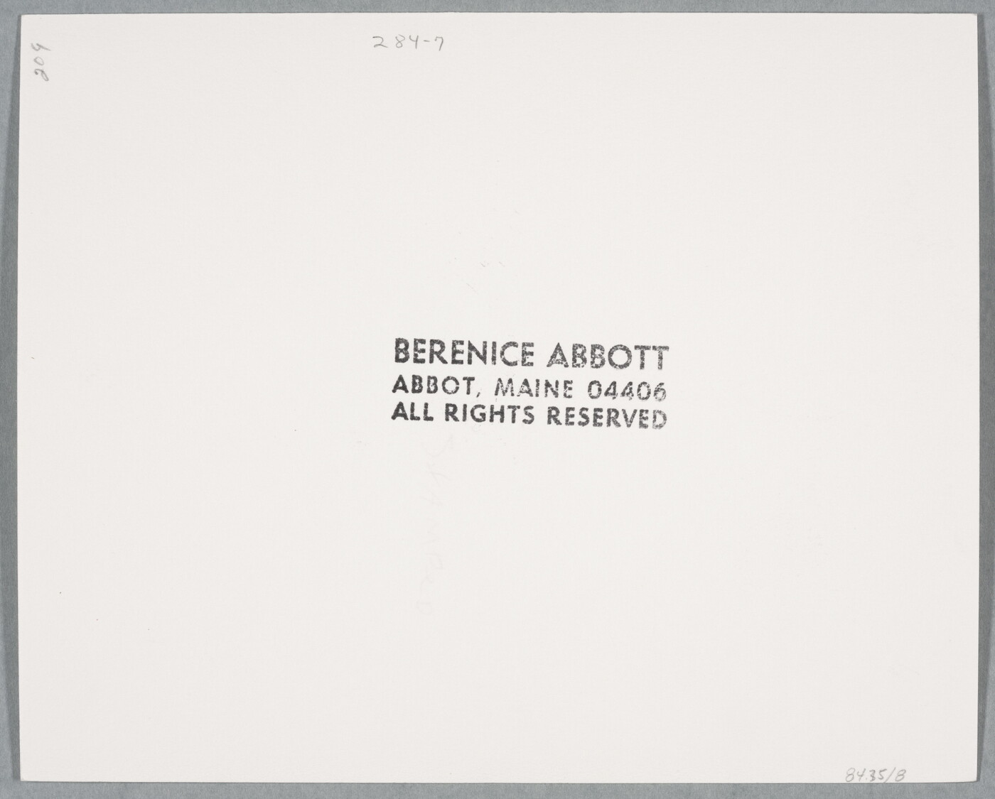 c. stamp: BERENICE ABBOTT \ ABBOT, MAINE 04406 \ ALL RIGHTS RESERVED