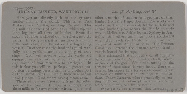 l.r. printed: 20027 - Shipping Lumber, Washington.