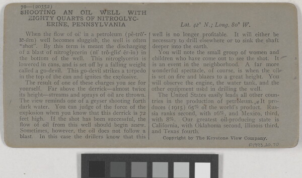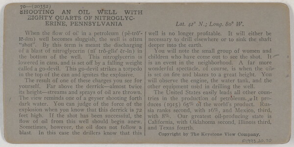 l.r. printed: 20352 - Shooting Well With Eighty Quarts of Nitro- \ Glycerine, Oil Field, Penn., U.S.A.