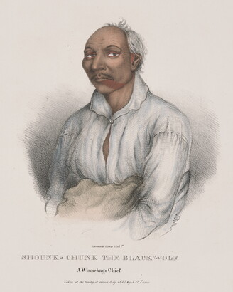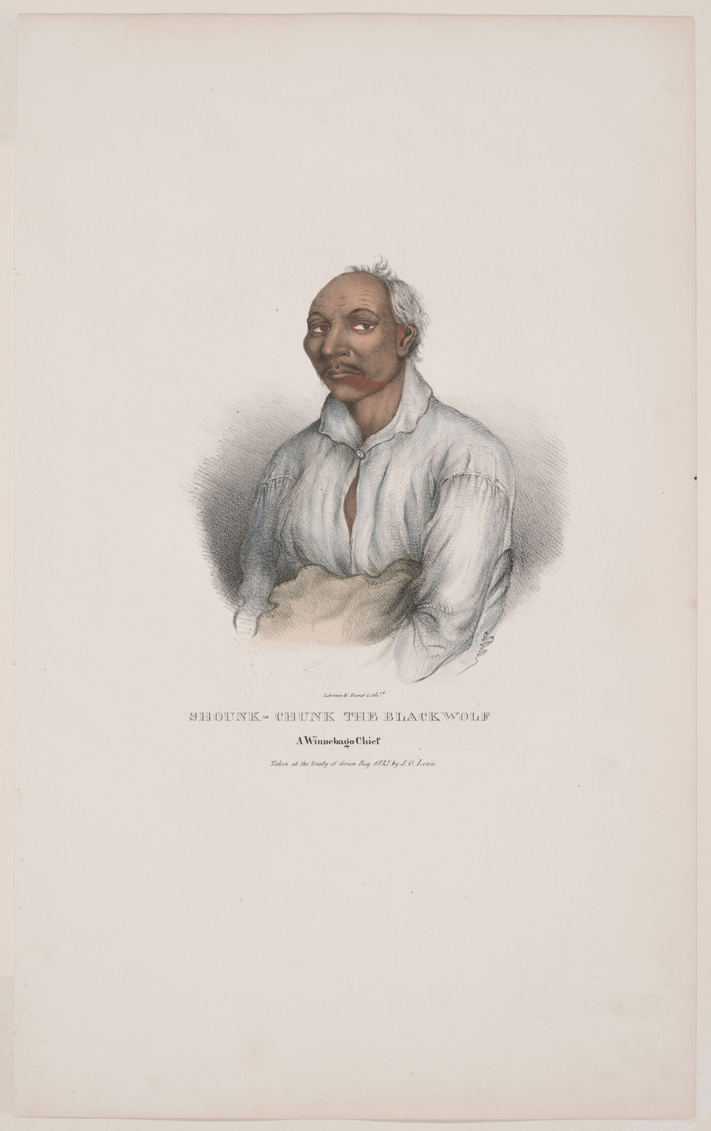l.c.: Lehman & Duval Lith[rs]. \ SHOUNK-CHUNK THE BLACKWOLF \ A Winnebago Chief \ Taken at the treaty at Green Bay 1827 by J.O. Lewis.