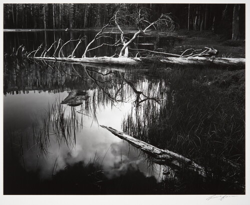 c. [printed on label]: Porfolio Four \ WHAT MAJESTIC WORD \ BY \ ANSEL ADAMS \ In Memory of Russell Varian \ XII \ SIESTA LAKE/YOSEMITE NATIONAL PARK, CALIFORNIA/SET NUMBER 123 \ PUBLISHED BY THE SIERRA CLUB \ SAN FRANCISCO, 1963 \ Reproduction rights reserved