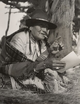 u.l. in ink on card: SIOUX MATRIARCH \ AT CEREMONIAL, KYLE, S.D. \ HELEN POST MODELY \ PHOTOGRAPH $75.