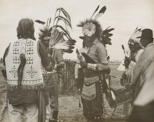 Sioux Medicine Man, Sitting Eagle aka Thomas Henry, Instructing Dancers in Part of Opening Ceremonial at Tribal Fair
