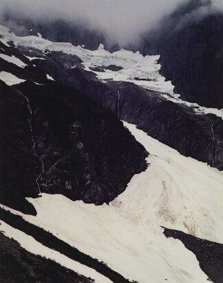 u.l. [stamp]: PHOTOGRAPH \ By \ ELIOT PORTER \ No. [in ink]: 75-579 \ [stamp]: Title [in ink]: SNOWBANK & WATERFALL \ WASHINGTON
