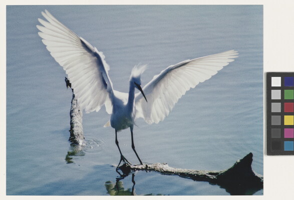 u.l. [stamp]: PHOTOGRAPH \ By \ ELIOT PORTER \ No. [in ink]: (74-35 1-A) 6-3-1-133 \ [stamp]: Title [in ink]: Snowy Egret