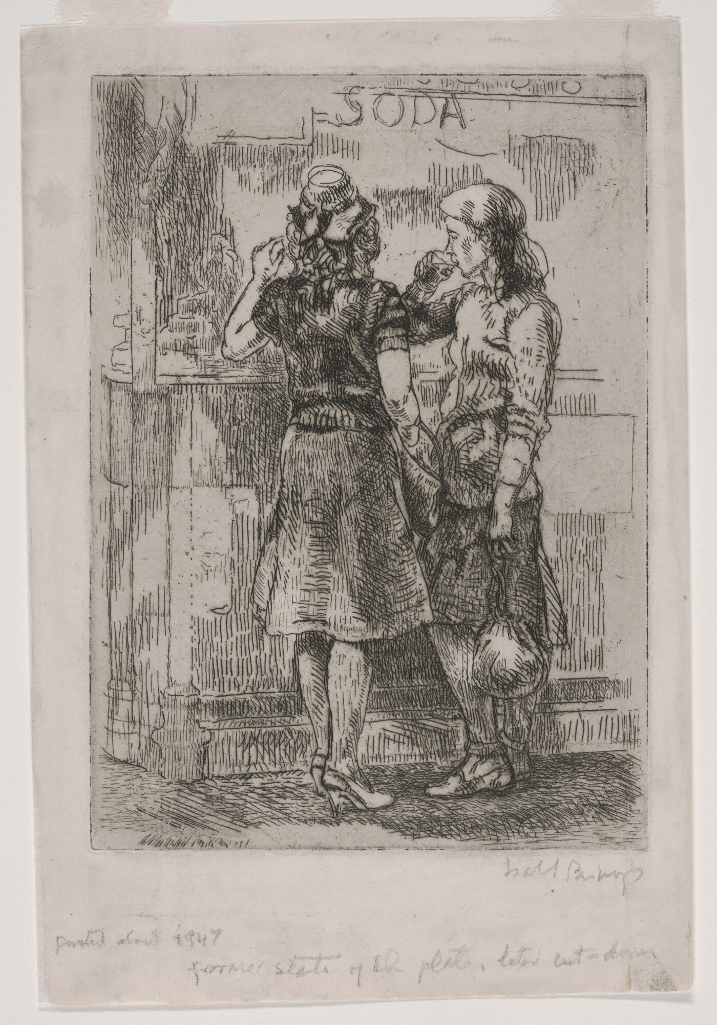 l.l. in graphite: printed about 1947 \ former state of the plate, later cut-down