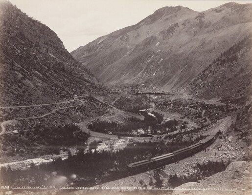 "The Spiral Loop" C.C.R.R. The Road Crosses Itself by an Iron Bridge 20 ft. High and Climbs the Mountain 250 ft. Every Mile. The Spiral Loop Clear Creek Cañon Rocky Mountains, Colo.
