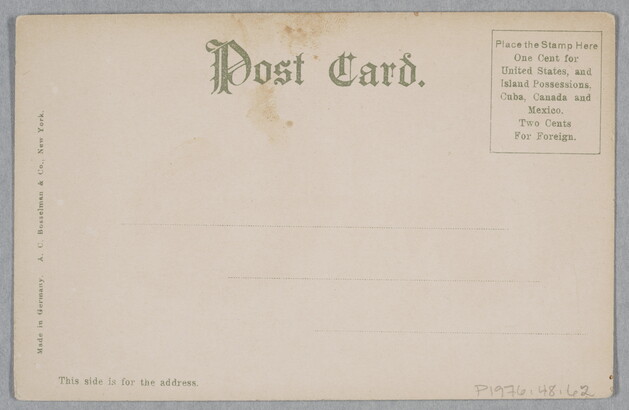 l.l. to c.l. printed along left edge: Made in Germany. A.C. Bosselman & Co., New York.